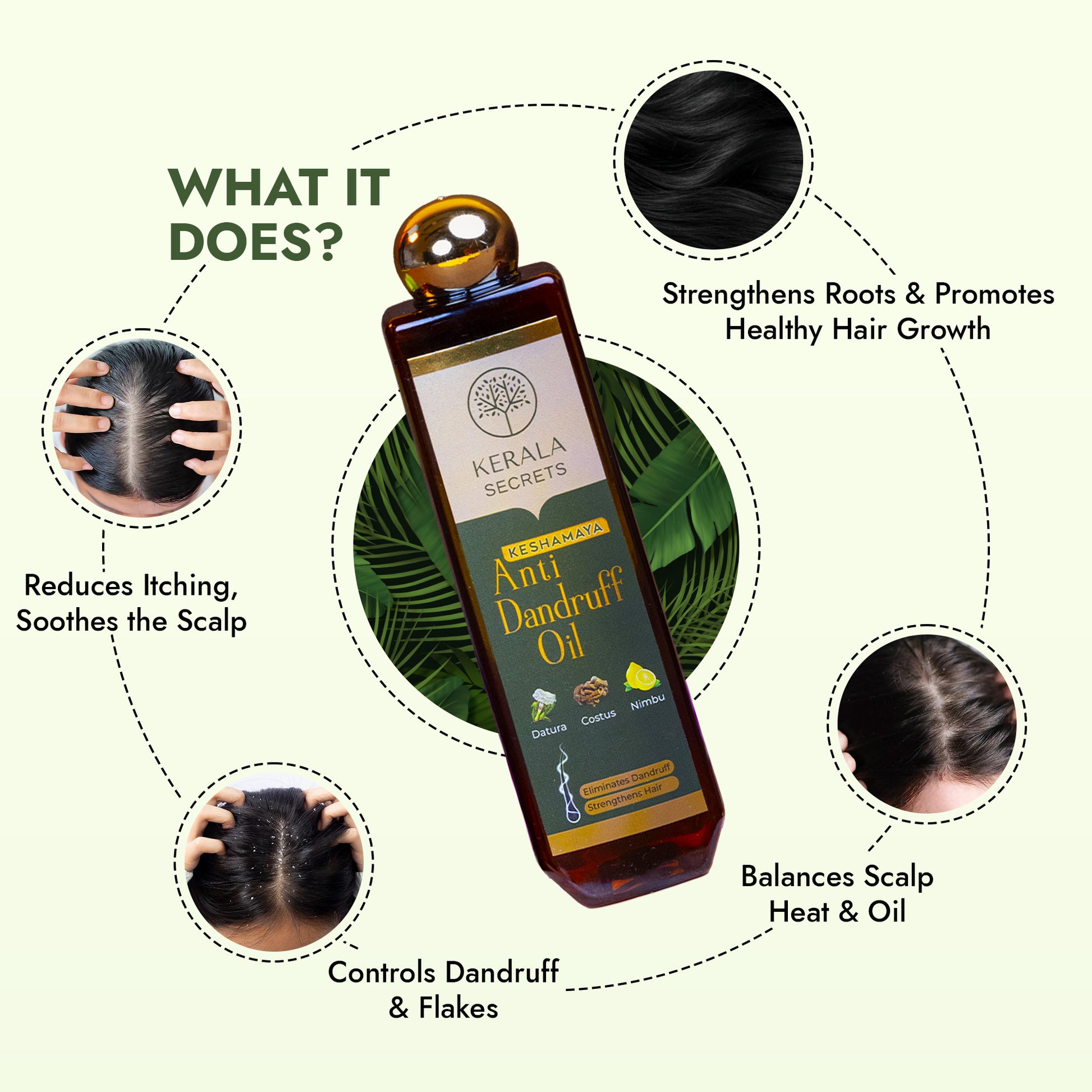 Crafted from powerful dandruff-fighting herbs like Costus, Datura, and Nimbu, Keshamaya works at the root cause of dandruff without disturbing your scalpβs natural balance β unlike harsh chemical shampoos.